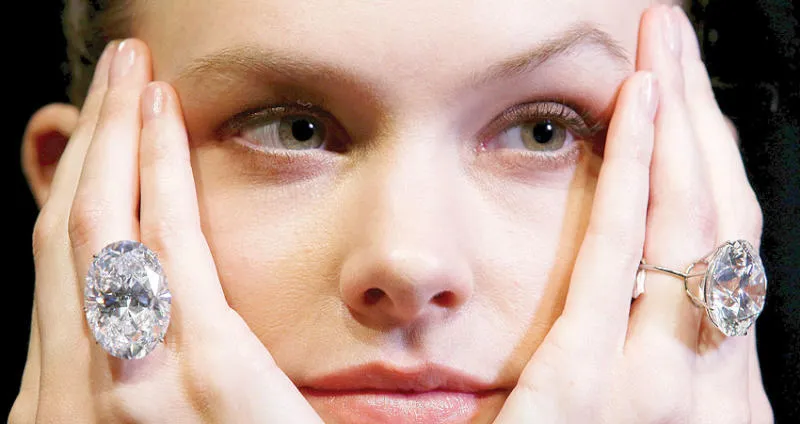 قالت‭‭ ‬‬إدارة الألماس في «دار سوذبيز» للمزادات، إنه من المتوقع أن تجلب ماستين بيضاوين تزن كل منها أكثر من 50 قيراطاً، ما يزيد على 15 مليون دولار عندما تعرضان للبيع بالمزاد في مايو (أيار).