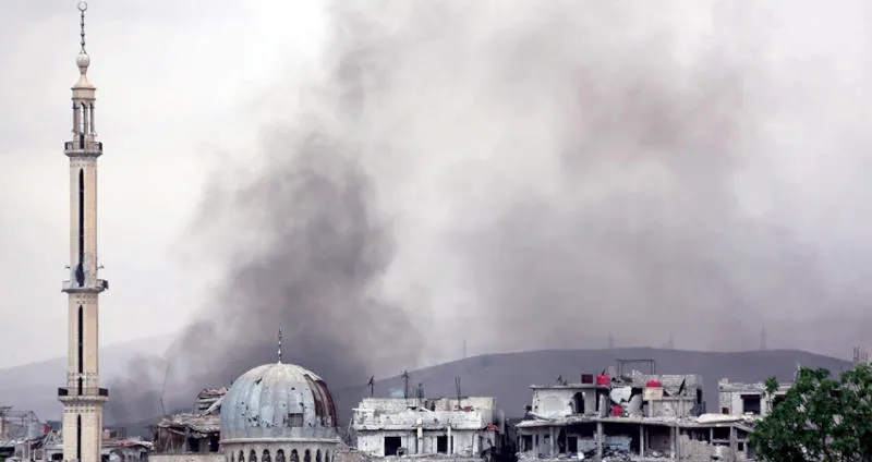 دخان يتصاعد من غوطة دمشق أمس (أ.ف.ب)
