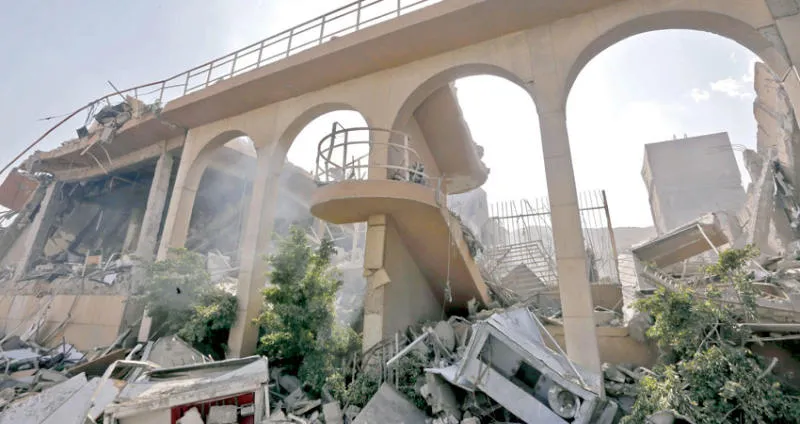 دمار في مركز البحوث في برزة في دمشق أمس (أ ف ب)
