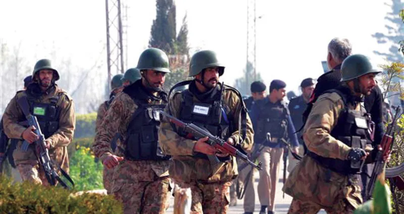 جنود من فرقة مكافحة الإرهاب الباكستانية خلال مداهمات في بيشاور («الشرق الأوسط»)