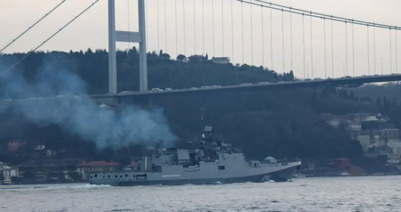 فرقاطة روسية تعبر مضيق البوسفور التركي.