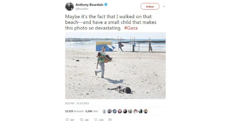 تغريدة أنتوني بوردن أشعلت «تويتر» والرأي العام في حرب غزة عام 2014