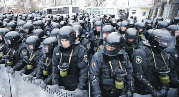 وناشدت المحتجين أن لا يستسلموا وأن لا يوافقوا على التفاوض مع عصابة يانوكوفيتش. وسأل الزعيم القومي اليميني المتطرف أوليه تيانيبوك المحتشدين: «هل نريد أن نرزح تحت نير موسكو؟!» فردوا قائلين: «لا». وسألهم: «هل نريد العودة إلى أوروبا؟!»، فصاحوا: «نعم». وتحركت مجموعة من المحتجين بعد ذلك باتجاه مبنى الحكومة على بعد كيلومتر، وبدأوا نصب خيام وإقامة حواجز، مستهدفين فيما يبدو منع النشاط الطبيعي للحكومة هذا الأسبوع. وتحول ميدان الاستقلال إلى قرية خيام مؤقتة حيث زين بالإعلام الأوكرانية وأعلام الاتحاد الأوروبي تحت شاشة تلفزيونية عملاقة. ووضع المحتجون صورة ضخمة لتيموشينكو على شجرة العام الجديد، وقد زُيّنت بلافتات مناهضة للحكومة. ونفت حكومتا وموسكو وكييف أن بوتين ويانوكوفيش ناقشا الاتفاق الجمركي في محادثاتهما الجمعة في منتجع سوتشي الروسي على البحر الأسود، لكن من المقرر عقد مزيد من المحادثات الثنائية في 17 ديسمبر (كانون الأول). ويُعتقد على نطاق واسع أن يانوكوفيتش وبوتين الذي يعتبر أوكرانيا ذات أهمية استراتيجية لمصالح موسكو توصلا لصفقة تحصل كييف بمقتضاها على غاز روسي أرخص، وربما تسهيلات ائتمانية، مقابل الابتعاد عن الاتحاد الأوروبي.