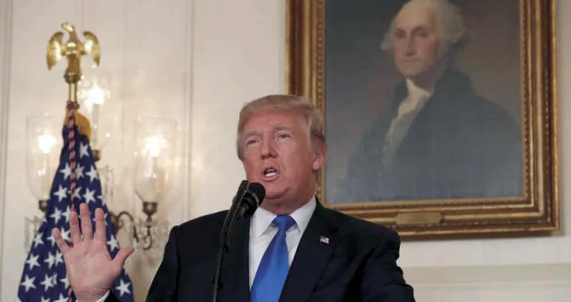 الرئيس الأميركي دونالد ترمب يلقي خطاباً يدعو فيه الكونغرس إلى مراجعة الاتفاق النووي منتصف أكتوبر الماضي (رويترز)
