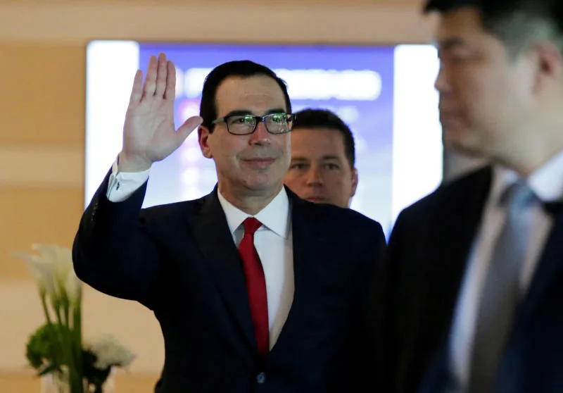 وزير الخزانة الأميركي ستيفن منوتشين في بكين (رويترز)
