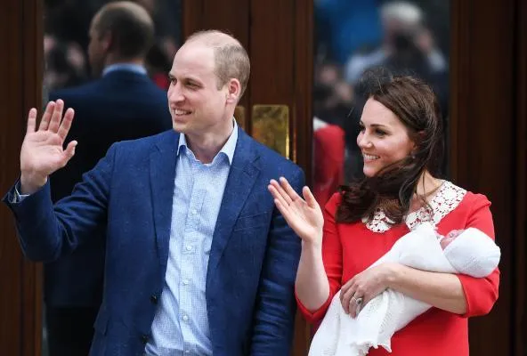 كيت ميدلتون دوقة كمبردج وزوجها الأمير وليام بعد ولادة الأمير لويس (إ.ب.أ)