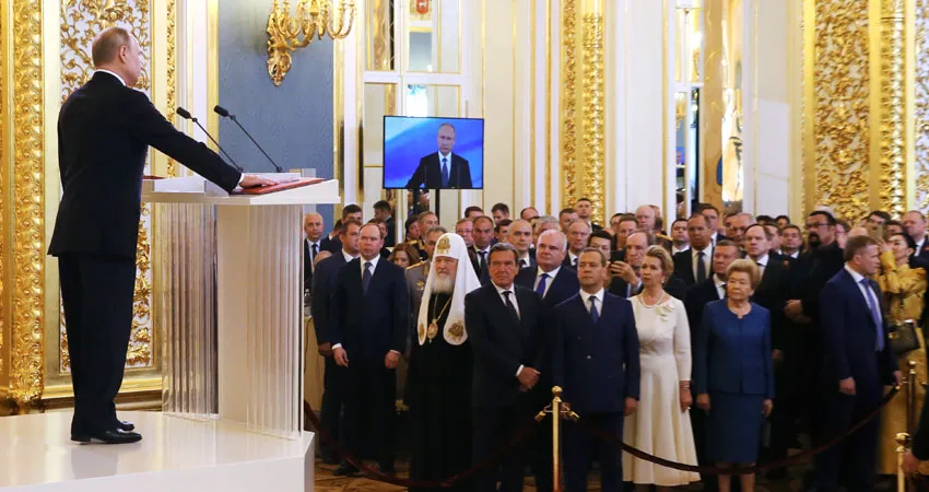 وقال بوتين خلال حفل التنصيب: «أنا مدرك تماماً لمسؤوليتي الهائلة أمام كل فرد منكم وأمام روسيا».