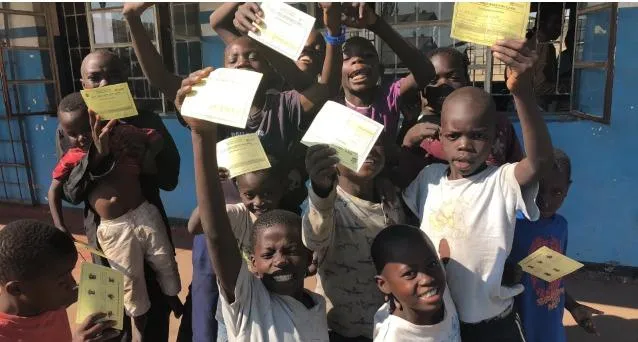 أطفال في زامبيا يحملون شهادات تثبت تلقيهم تطعيما ضد الكوليرا (تلغراف)