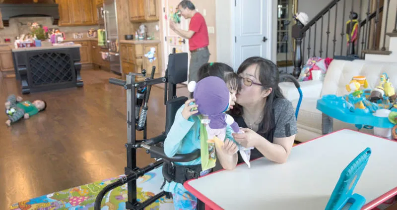 الباحثة الأميركية سوو ــ كيونغ مع ابنتها يونا لي المصابة بطفرة جينية نادرة عطلت نمو دماغها