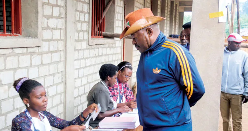 الرئيس بيير نكورنزيزا يدلي بصوته أمس في الاستفتاء الذي سيبقيه رئيساً لبوروندي حتى عام 2034 (رويترز)