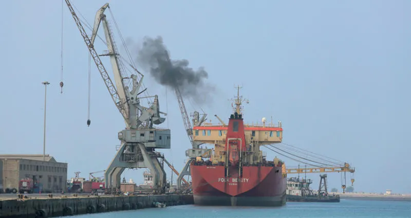 ميناء الحديدة الخاضع لسيطرة الحوثيين كما بدا الشهر الماضي (رويترز)