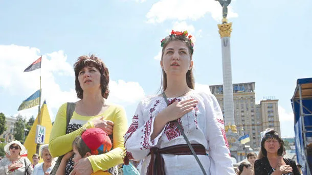 محتجات أوكرانيات وسط العاصمة كييف أمس (إ.ب.أ)