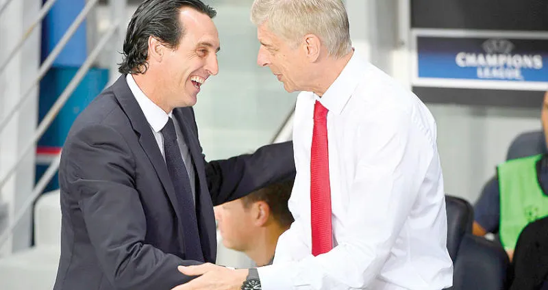 إيمري وفينغر في مواجهة بين آرسنال وباريس سان جيرمان بدوري أبطال أوروبا في سبتمبر 2016 (أ.ف.ب)