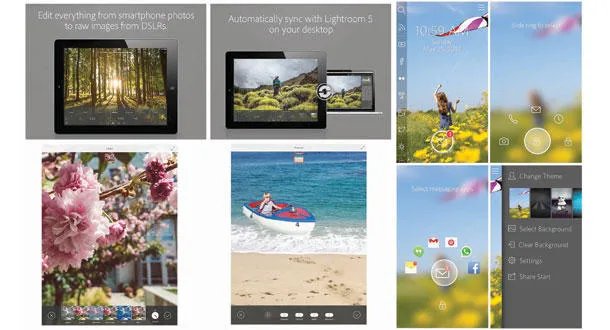 يسمح لك تطبيقا «أدوبي فوتوشوب ميكس» Adobe Photoshop Mix على أجهزة «آي باد»، و«لايتروم» Lightroom على أجهزة «آي فون»، بإضافة المؤثرات البصرية الباهرة لصورك، حيث يجلب تطبيق «فوتوشوب ميكس» مجموعة من المزايا المتقدمة إلى عالم الأجهزة الجوالة، مثل طبقات التحرير والقدرة على التخزين والتحميل من مواقع التخزين السحابي، وغيرها. أما تطبيق «لايتروم»، فيسمح للمستخدم بالقيام بعمليات تحرير سريعة للصور، مع تطوير آلية الاستخدام على الشاشة الصغيرة لهواتف «آي فون». ويمكن استخدام هذه التطبيقات لقاء 9.99 دولار أميركي شهريا، ويمكن تحميلها من متجر «آي تونز» الإلكتروني.