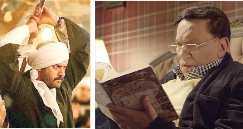 عادل إمام في لقطة من مسلسل «عوالم خفية» - عمرو يوسف في لقطة مسلسل «طايع»