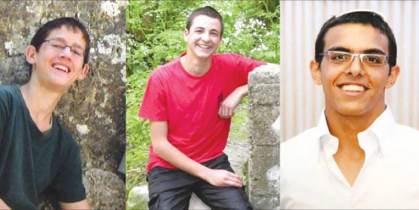 الشبان الإسرائليون الثلاثة الذين أعلنت قوات الأمن الإسرائيلية أمس عن اكتشاف جثثهم بعد اختفائهم في الضفة الغربية منتصف الشهر الماضي (رويترز)