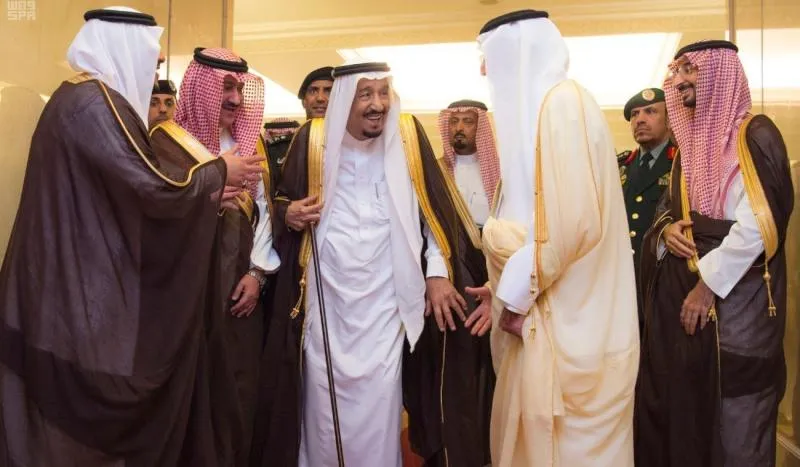 وقد وصل في معية خادم الحرمين الشريفين كل من، الأمير منصور بن سعود بن عبد العزيز، والأمير طلال بن سعود بن عبد العزيز، والأمير الدكتور عبد العزيز بن سطام بن عبد العزيز مستشار خادم الحرمين الشريفين، والأمير محمد بن عبد الرحمن بن عبد العزيز نائب أمير منطقة الرياض، والأمير عبد الله بن خالد بن سلطان بن عبد العزيز المستشار في الديوان الملكي.