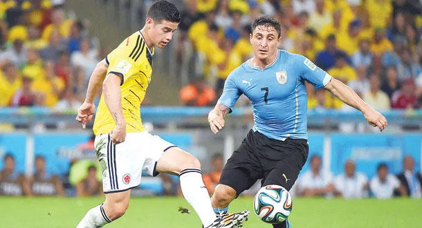 من مباراة كولومبيا وأوروغواي في دور الـ16 (أ.ف.ب)