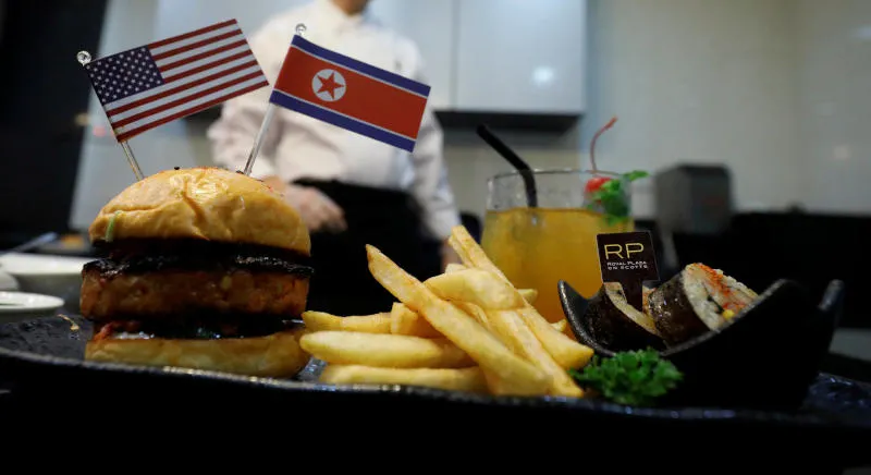 ودعت سلسلة «وولف برغرز» لشطائر البرغر في سنغافورة ترمب وكيم إلى تذوق شطائر أطلقت عليها اسم «برغر من أجل السلام العالمي» ومزجت فيها بين الجبن الشيدر الأميركي وأكلة البولجوجي الكورية الشهيرة.