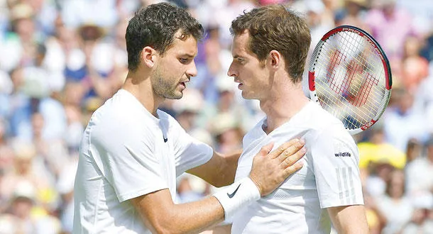 موراي يحيي ديميتروف بعد المباراة التي فاز فيها الأخير  (أ.ف.ب)