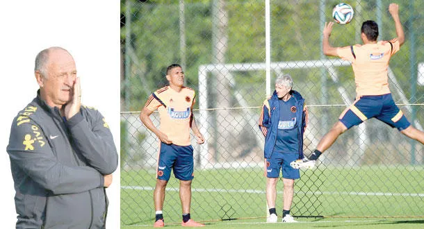 بيركمان مدرب كولومبيا يراقب تدريبات لاعبيه قبل مواجهة البرازيل الحاسمة (أ.ف.ب) - سكولاري مدرب البرازيل يفكر في خطة لمواجهة كولومبيا
