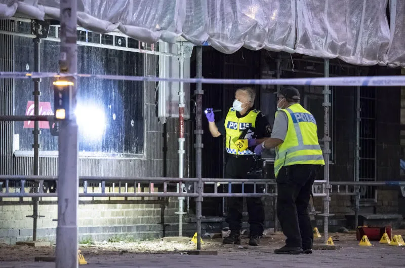 الشرطة الجنائية السويدية في مكان وقوع اطلاق النار (أ.ب)