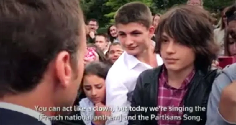 وظهر الصبي على شاشات وسائل الإعلام الفرنسية، وهو يردد كلمات النشيد الاشتراكي الدولي قبل أن يقول للرئيس «كيف الحال مانو؟».