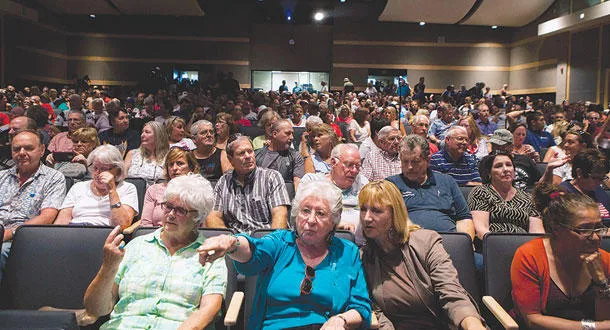 سكان مدينة موريتا بولاية كاليفورنيا الأميركية خلال اجتماع للمجلس البلدي لبحث مشكلة تدفق المهاجرين وكيفية إعادتهم لبلادهم (رويترز)