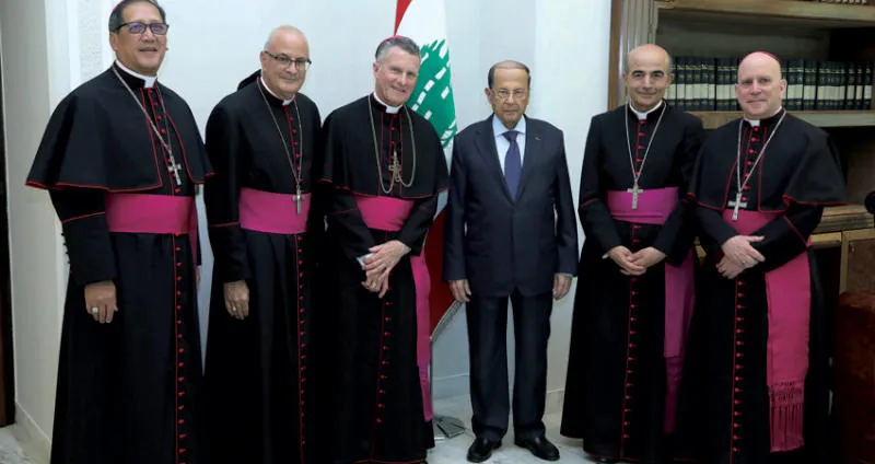 الرئيس اللبناني ميشال عون مستقبلاً وفد المطارنة الكاثوليك الأميركي (دالاتي ونهرا)