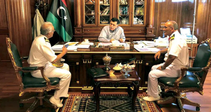 فائز السرّاج رفقة مسؤولين من البحرية الليبية (المكتب الإعلامي للمجلس)