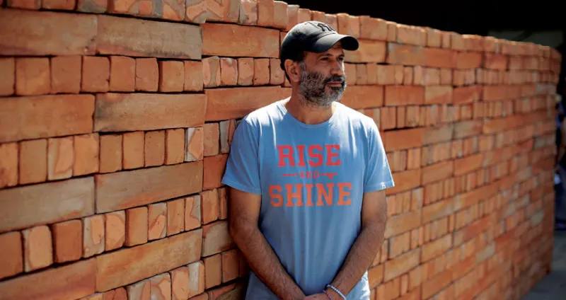 فنان مكسيكي «بنى» جداراً يمتد على 8 أمتار واستخدم 1600 طوبة صُنعت في المكسيك على ضفاف نهر التيمز بلندن في احتجاج على سياسات الرئيس الأميركي (أ.ب)