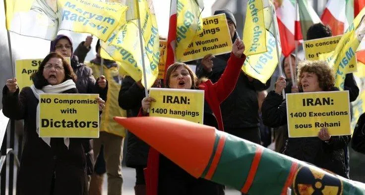 إيرانيون يتظاهرون ضد النظام خلال اجتماع لوزراء خارجية الاتحاد الأوروبي في بروكسل (رويترز)