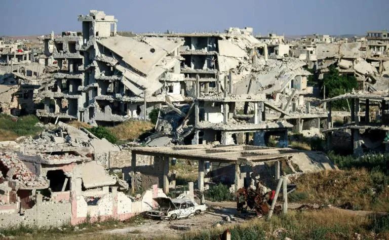 مبان مدمرة في محافظة درعا جنوب سوريا (أ.ف.ب)