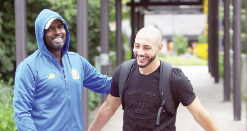 المغربي نور الدين مستقبلاً بحفاوة من زملائه في النصر لدى انضمامه للمعسكر أمس («الشرق الأوسط»)