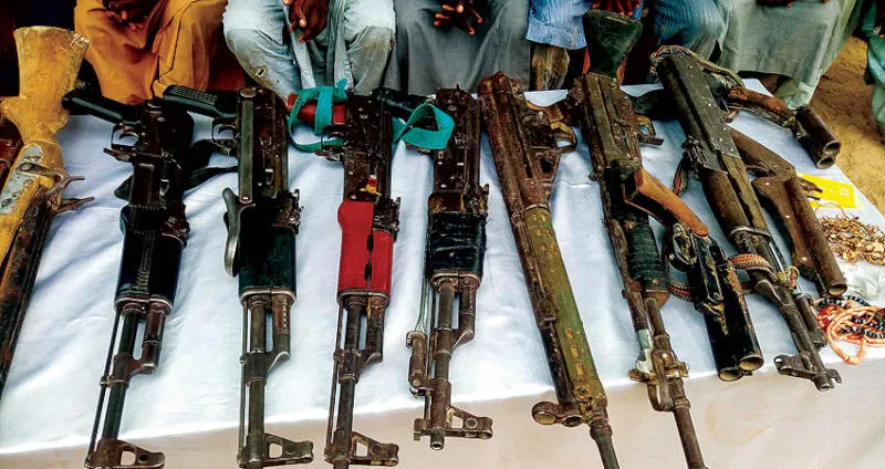 أسلحة عثر عليها مع خلية لـ{بوكو حرام} عقب مداهمتها في مايدوغوري شمال شرقي نيجيريا (أ.ف.ب)