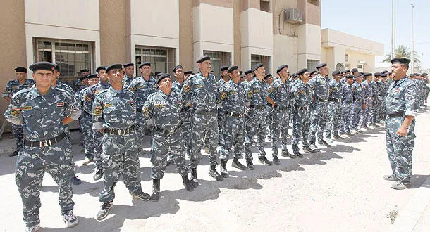 متطوعون في الجيش العراقي في عرض عسكري بمعسكر في بغداد أمس (رويترز)