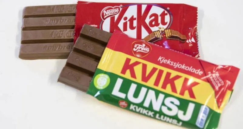 شوكولاته «كفيك لونغ» النرويجية وشوكولاته «كيت كات» (أ.ف.ب)