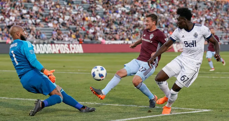 ألفونسو ديفيس (يمين) يتألق في الدوري الأميركي أمام فريق كولورادو رابيدس (أ.ب)