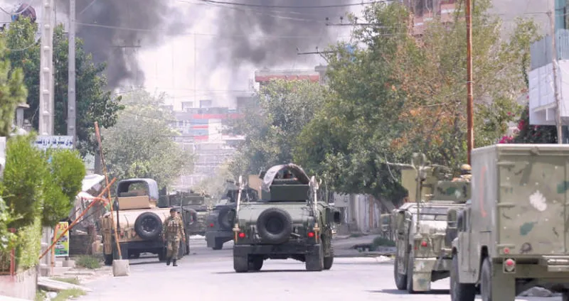 سحب دخان تتصاعد من مركز لتدريب القابلات تعرض لهجوم في جلال آباد شرق أفغانستان أمس (رويترز)