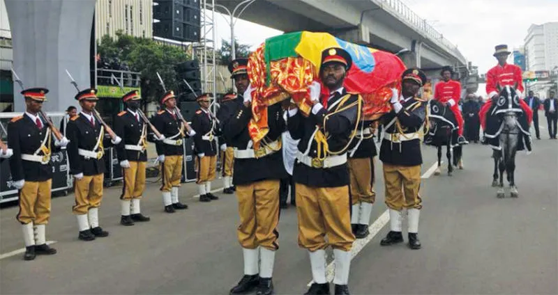 صورة وزعتها وكالة الأنباء الأثيوبية لتشييع جنازة مدير مشروع سد النهضة المقتول في أديس أبابا