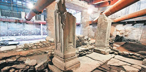 وقد تمكن علماء الآثار من العثور على مجوهرات وقطع نقدية ومزهريات وأوان من الخزف أثناء عمليات شق نفق عبر أربع محطات لمترو الأنفاق الجديد في المدينة.