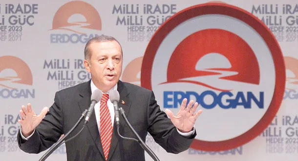 رئيس الحكومة التركية رجب طيب إردوغان يتحدث أمام حشد من أنصاره في إسطنبول عن رؤيته لصورة «تركيا جديدة» أمس (أ.ف.ب)