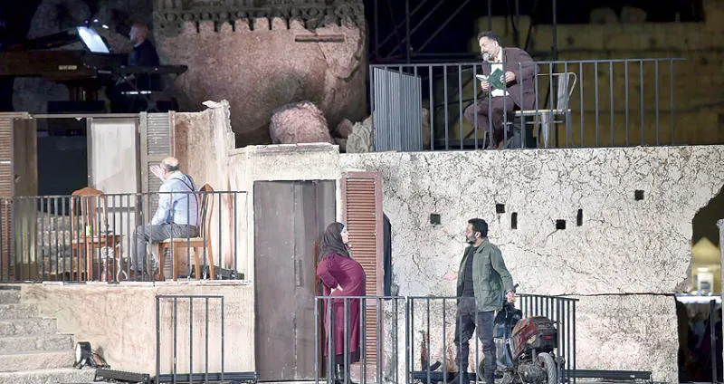 مشهد من مسرحية «إلا إذا» الكوميدية في قلعة بعلبك التاريخية