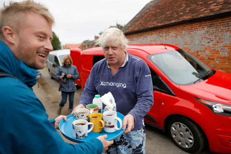 وظهر جونسون مبتسما وهو يحمل صينية من أكواب الشاي الساخنة، مازحا مع أحدي المراسلات التي سألته: «هل تدلي بتعليق مقابل أن آخذ كوبا من الشاي؟»، فاكتفي بقوله: «ليس لدي ما يقال في هذا الصدد، باستثناء تقديم بعض الشاي لكم».
