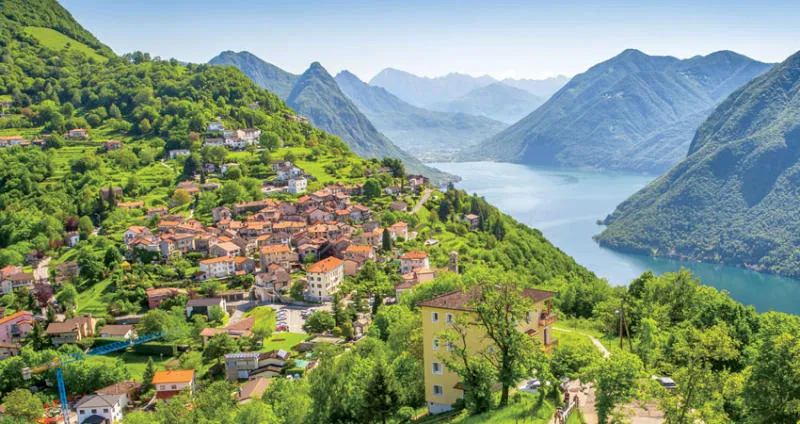 منظر بانورامي للوغانو بغاباتها وجبالها وبحيراتها