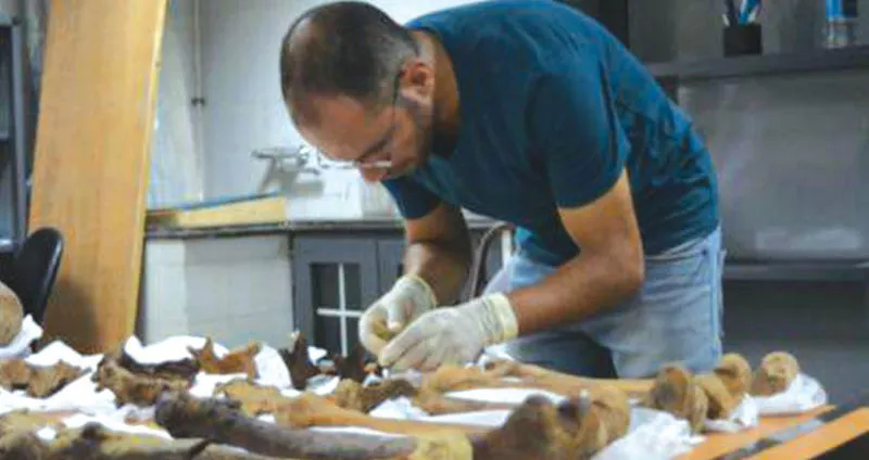 أحد أعضاء الفريق البحثي لهياكل التابوت يواصل عمله («الشرق الأوسط»)