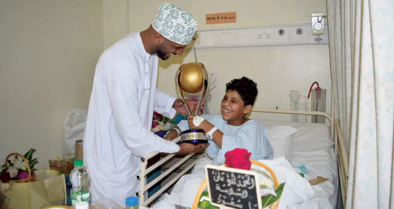 الحبسي يزور طفلاً سعودياً فقد والديه في حادث بصلالة