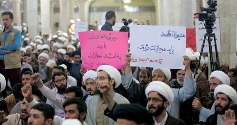 وبدأت الحكاية الخميس الماضي، عندما تناقلت وسائل الإعلام صورة عن وقفة احتجاجية في حوزة قم العلمية (معقل رجال الدين في إيران) ضد الفساد، تتضمن كلمات تتوعد من يحملون شعار المفاوضات بمصير أصحاب مسبح فرح في طهران، وهو المكان الذي توفي فيه قبل نحو عام ونصف العام الرئيس الإيراني الأسبق رئيس مجلس تشخيص مصلحة النظام علي أكبر هاشمي رفسنجاني. وبحسب المصادر الإيرانية، فإن هتافات في اليوم نفسه راحت تتوعد الرئيس الإيراني بـ«الموت».