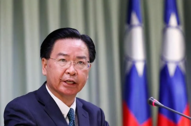 وزير الخارجية التايواني جوزيف وو في مؤتمر صحافي في تايبيه (رويترز)