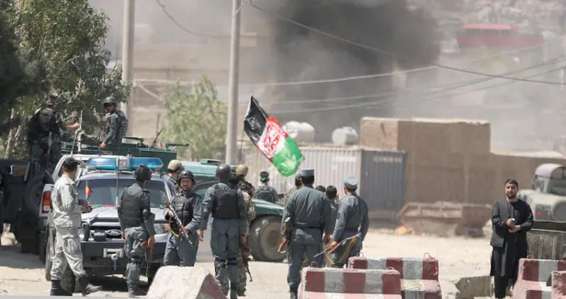 إجراءات أمنية مشددة ودخان يتصاعد من وسط العاصمة كابل إثر قصف صاروخي أثناء إلقاء الرئيس غني خطابه بمناسبة عيد الأضحى أمس (إ.ب.أ)